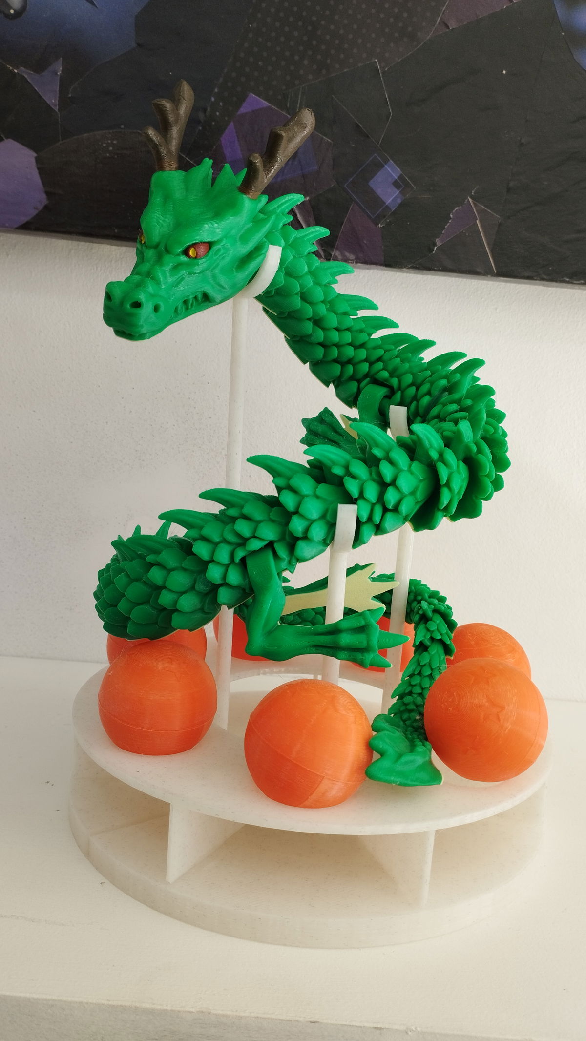 Figura de impresión 3D con soporte y las siete esferas